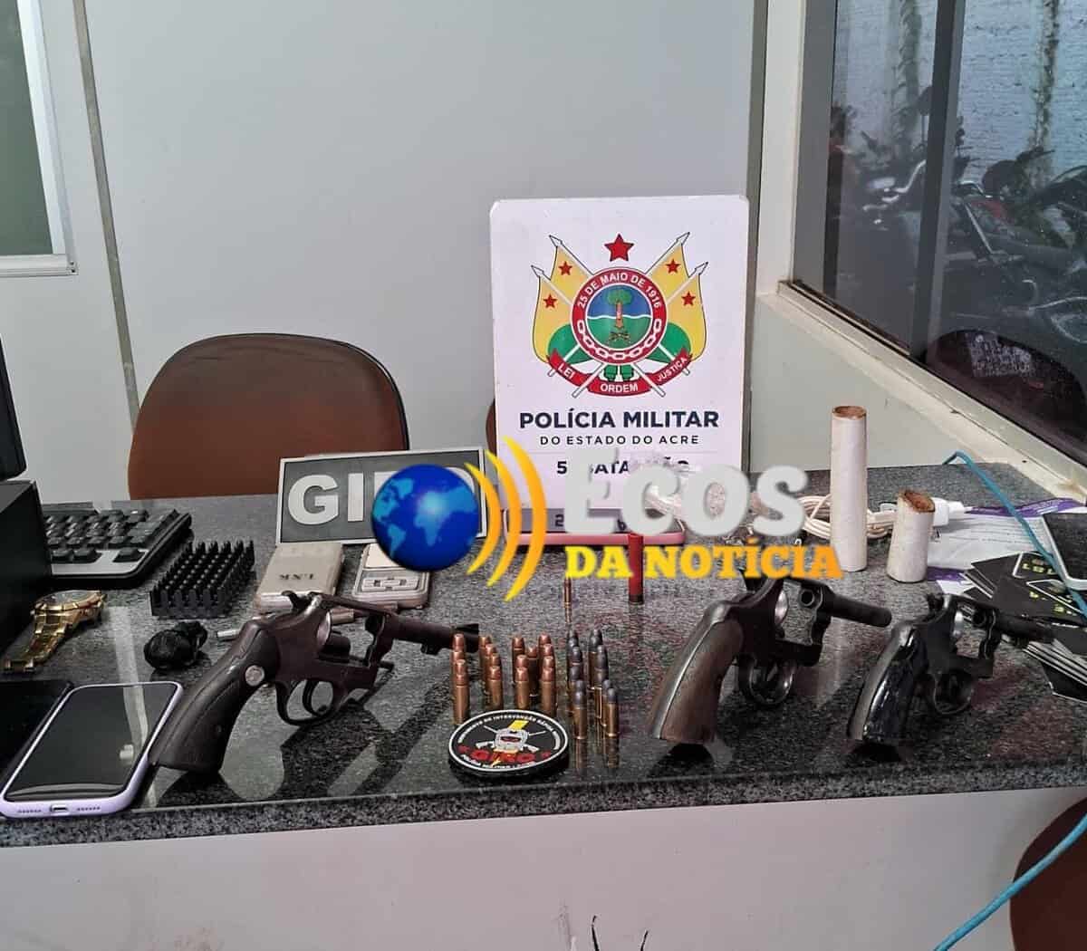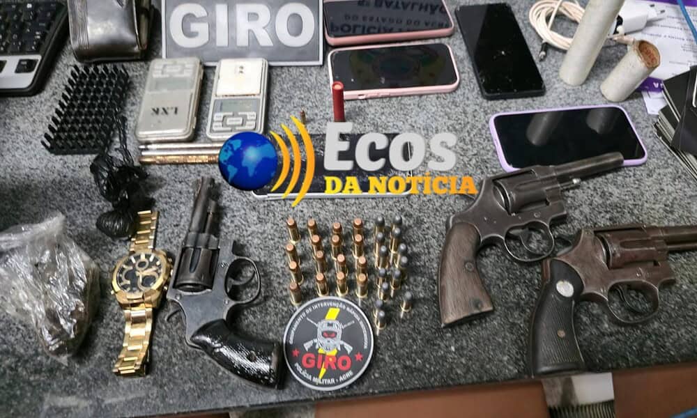 Durante a operação, foram apreendidos três revólveres, calibres .38 e .32, todos municiados, além de diversas munições de diferentes calibres. No interior do imóvel, os policiais encontraram aparelhos celulares, balanças de precisão e porções de substâncias aparentando ser cocaína e maconha, entre outros objetos.