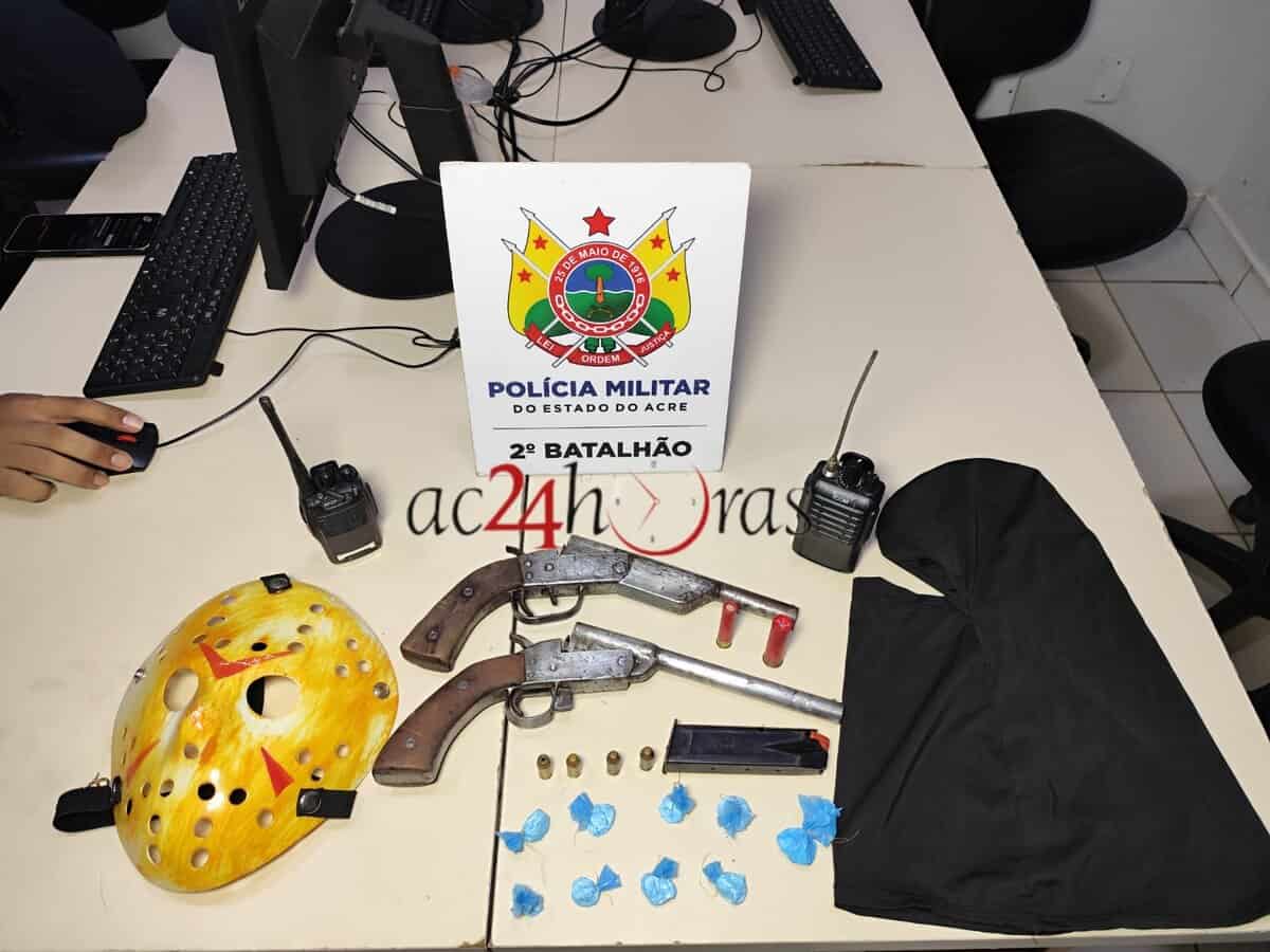Uma ação dos Policiais Militares do 2º Batalhão resultou na prisão de Victor Wiliam Lima da Silva, de 20 anos, e na apreensão do adolescente L.H.S.C., de 16 anos, na noite desta segunda-feira (16), no Conjunto Habitacional Cidade do Povo, em Rio Branco.