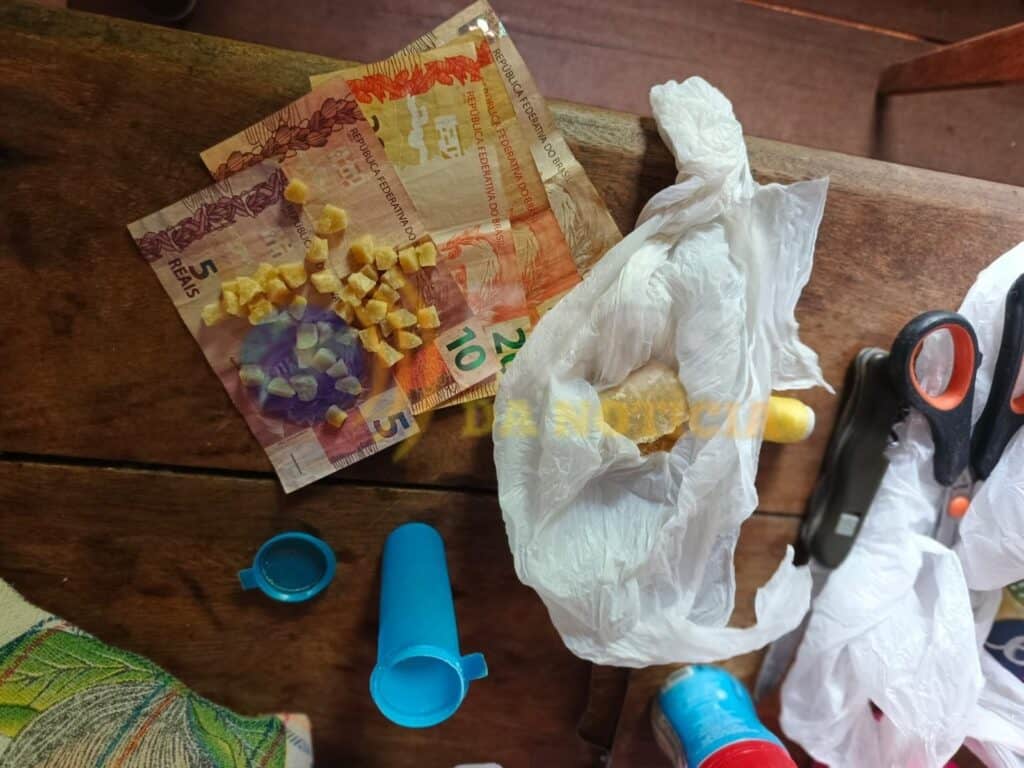 Após o flagrante, o suspeito indicou aos agentes a residência onde morava. No imóvel, os policiais localizaram mais uma porção de crack e oito invólucros de maconha. Também foram apreendidos diversos objetos que, conforme relato do próprio detido, teriam sido trocados por entorpecentes — prática comum no tráfico, segundo a polícia.
