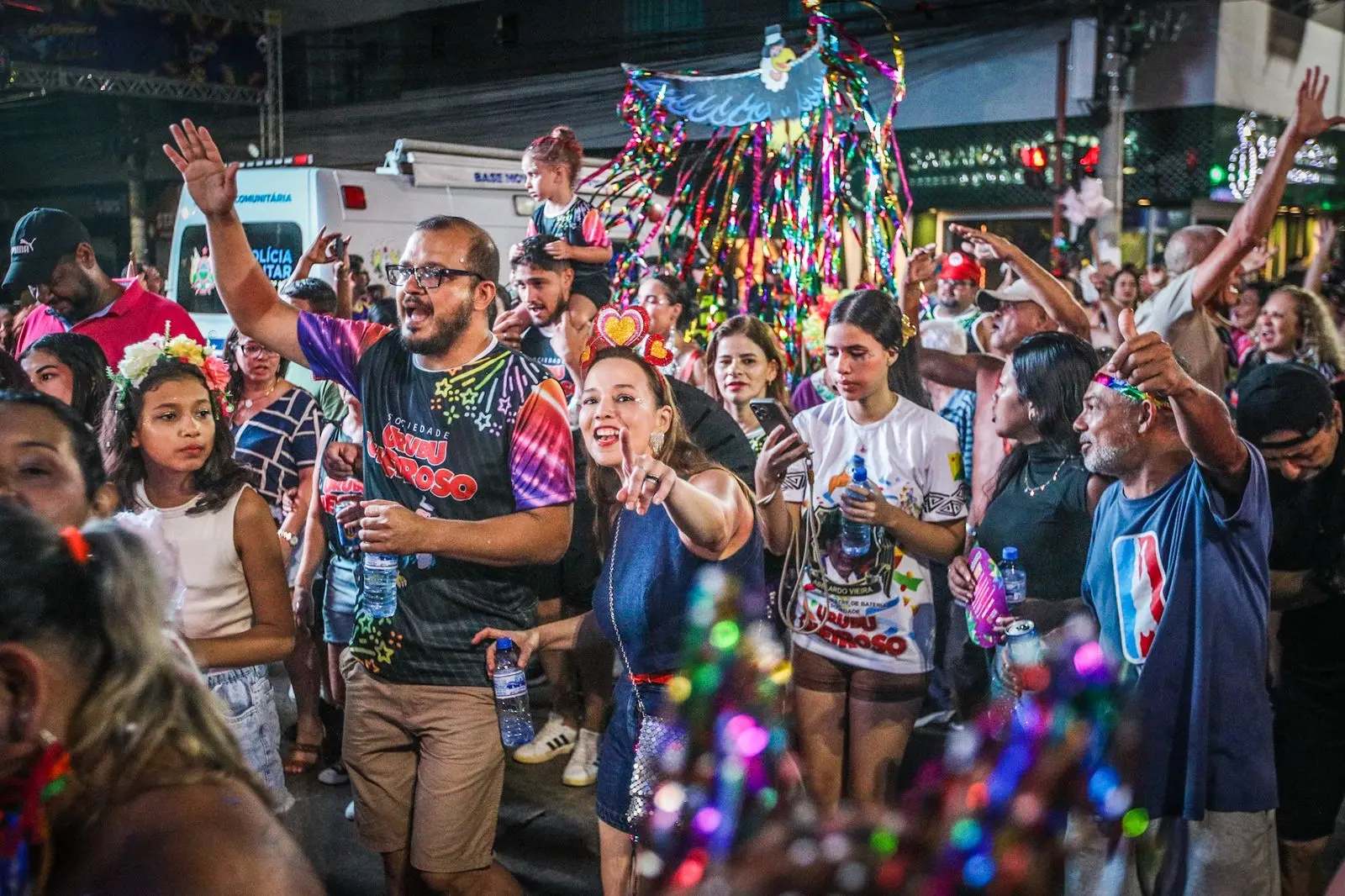 A concentração começou por volta das 17h, em frente ao prédio do INSS, com forte participação popular e a presença do prefeito Tião Bocalom e do vice-prefeito Alysson Bestene. O cortejo seguiu em clima de festa, reforçando a importância histórica da agremiação para o carnaval de Rio Branco.