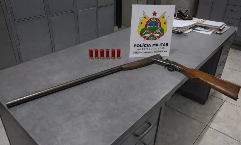 Uma guarnição do 8º Batalhão da Polícia Militar apreendeu uma arma de fogo durante atendimento a ocorrência de lesão corporal, na noite de segunda-feira (23), no município de Santa Rosa do Purus, no interior do Acre. O fato ocorreu por volta das 23h, em via pública na região central da cidade.