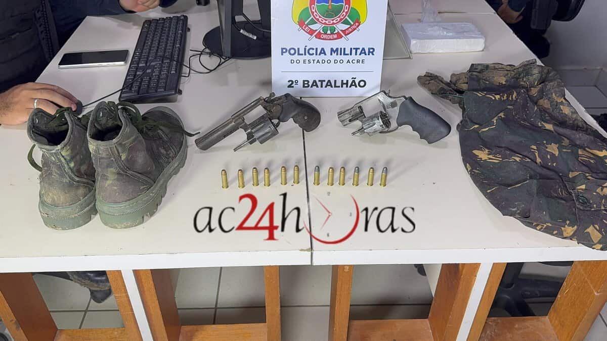 Uma ação dos Policiais Militares da Força Tática do 2° Batalhão resultou na prisão de Cleiseniudo de Souza Lima, de 22 anos, e Marcelo da Silva Nascimento, de 28, e apreensão de dois revólveres calibre .38 municiados, na noite desta segunda-feira (2), na Vila Albert Sampaio, no Segundo Distrito de Rio Branco.