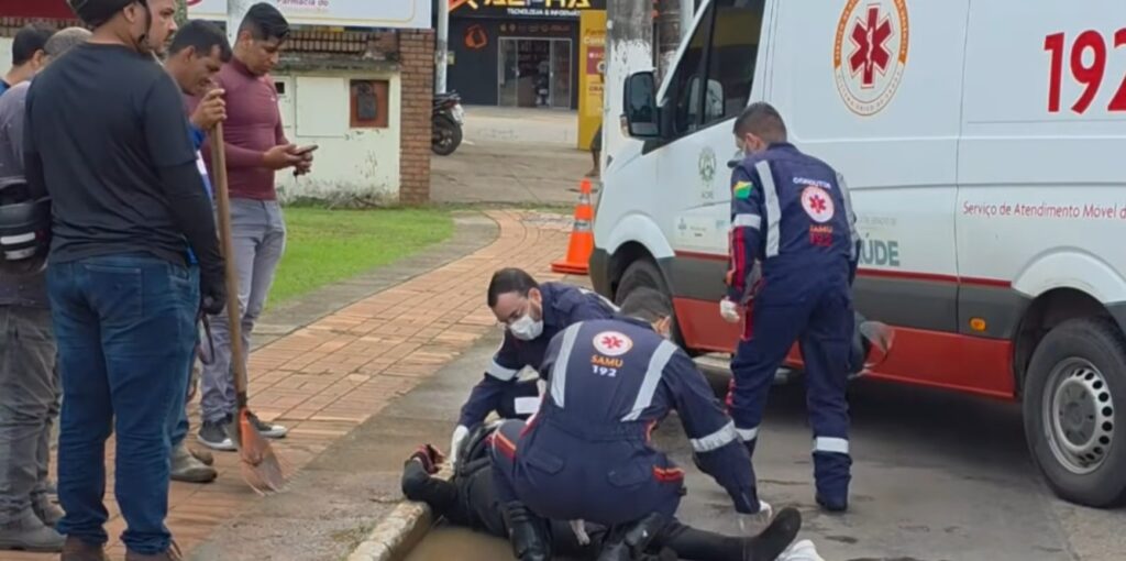 Um acidente entre um automóvel HB20 e uma motocicleta deixou um ferido na manhã desta quarta-feira (25), na Avenida Ceará, trecho que desce do estádio José de Melo até o terminal urbano, em Rio Branco. O motociclista identificado como Charles Silva de Freitas Júnior foi arremessado a cerca de 30 metros do ponto da colisão.