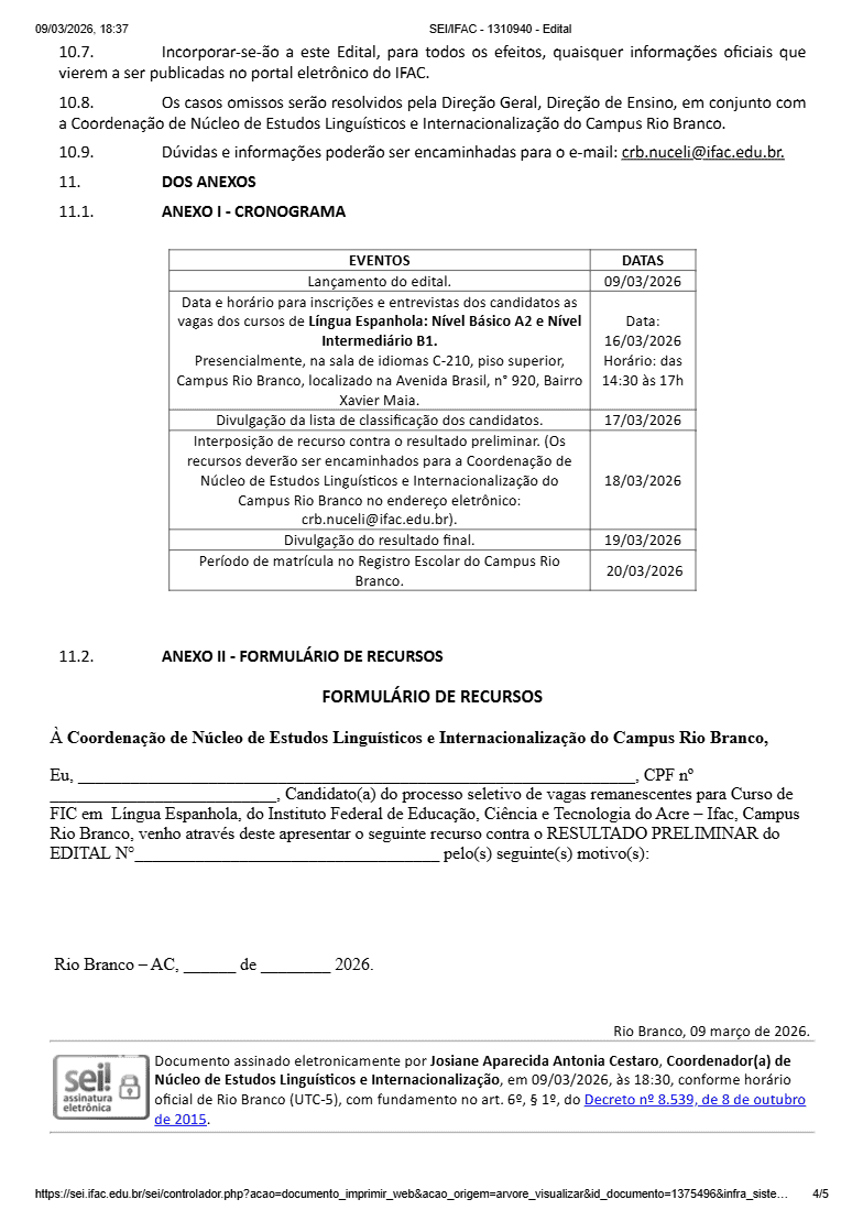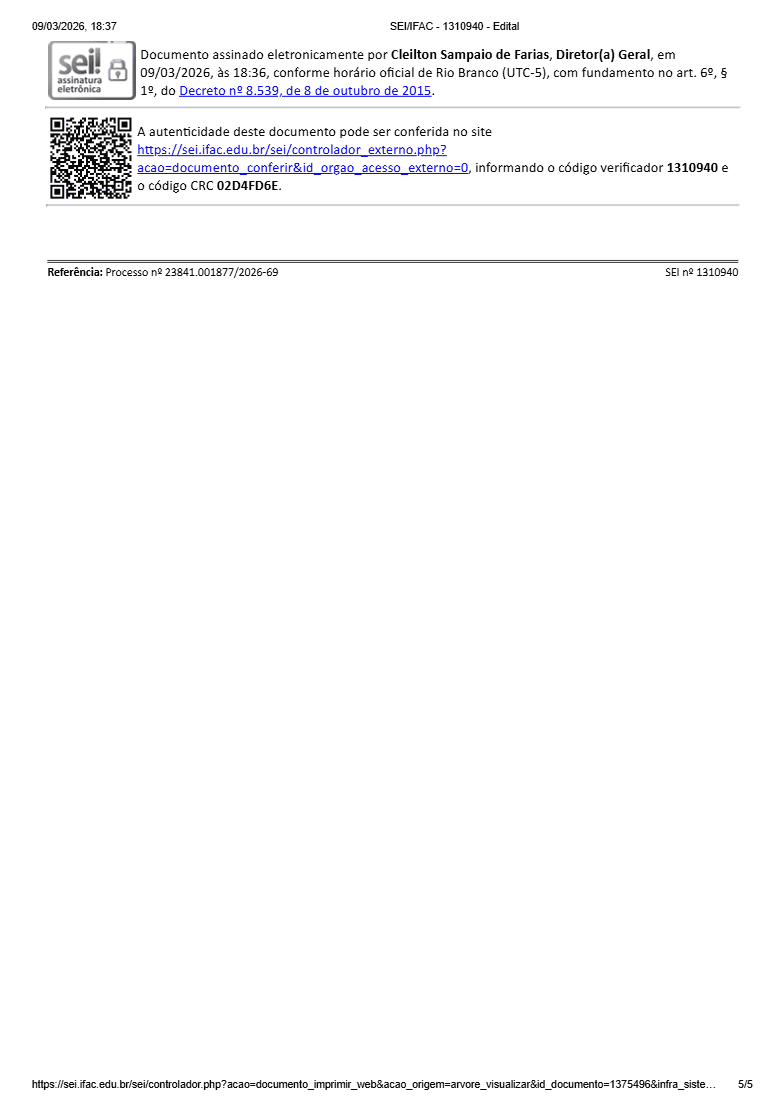 Mais informações e o edital completo podem ser consultados no site oficial do Ifac, na página de editais da instituição.