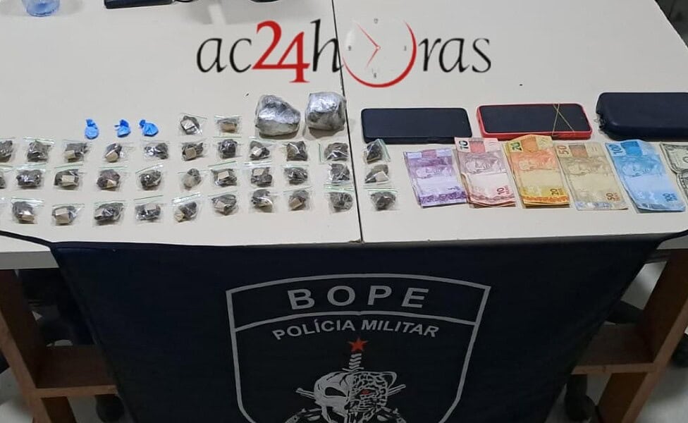 Diante da denúncia, os militares seguiram até o endereço indicado para averiguar a situação. Ao se aproximarem do local, os policiais observaram um usuário recebendo drogas e entregando dinheiro a um dos suspeitos, o que motivou a abordagem imediata.