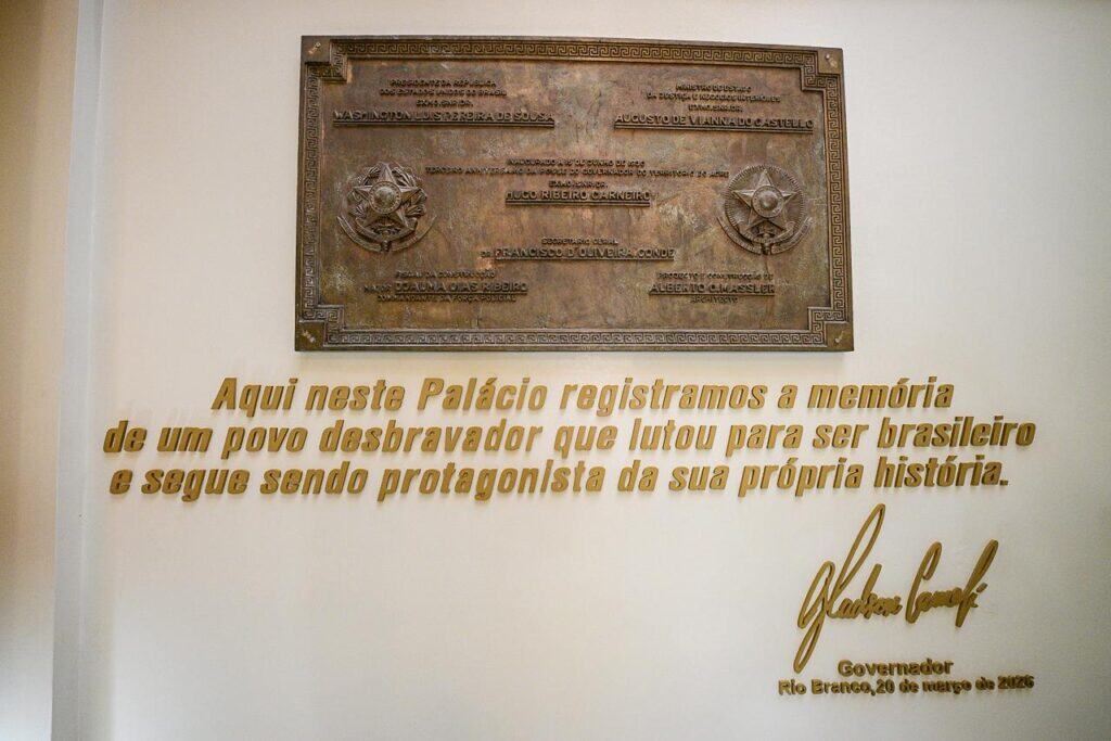 Segundo ele, a revitalização vai além da recuperação física do prédio. “Entregar o Palácio Rio Branco restaurado é mais do que concluir uma obra. É devolver ao povo acreano um pedaço da sua própria história. O Palácio Rio Branco representa o Acre. Você vê uma foto dele em qualquer lugar do Brasil ou do mundo e sabe que é o nosso estado”, afirmou.