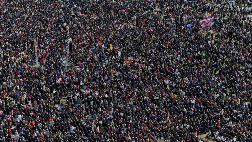 Organizadores nos Estados Unidos disseram a repórteres em entrevista coletiva que esperam que os protestos de sábado sejam maiores do que as duas primeiras rodadas de manifestações do movimento “No Kings”, que, segundo estimativas, atraíram mais de 5 milhões de pessoas em junho e mais de 7 milhões em outubro.