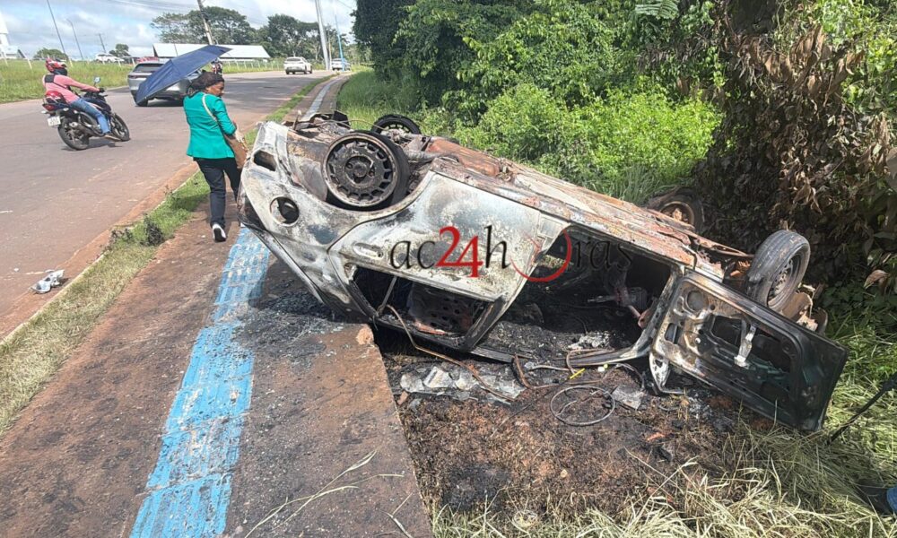 De acordo com informações repassadas ao Centro de Operações da Polícia Militar (190), equipes do Batalhão Ambiental foram acionadas para atender a ocorrência. No local, os policiais encontraram o carro já capotado após colidir contra um poste de iluminação pública, com as chamas se alastrando rapidamente e consumindo todo o veículo.