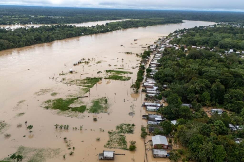 Em anos anteriores, o Rio Juruá também registrou níveis elevados: em 2017, atingiu 14,24 metros; já em 2021, chegou a 14,36 metros.