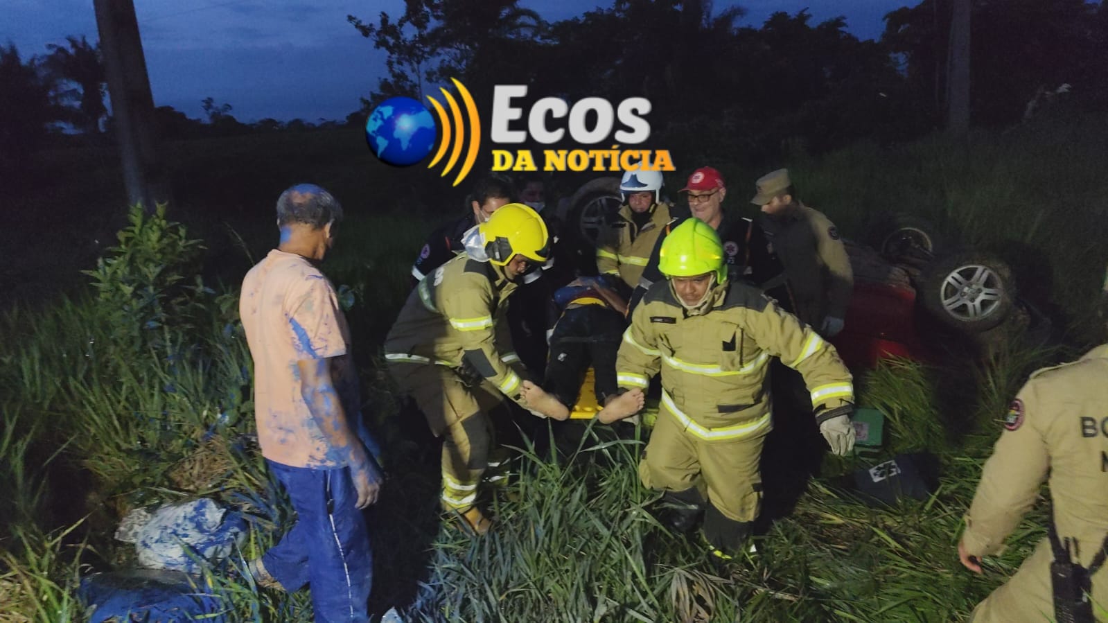 Um capotamento registrado no final da tarde deste domingo (7) deixou Iris Melo Gondim, de 49 anos, Levi Lima França, de 52 anos, e um