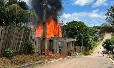 Uma casa construída em madeira e alvenaria foi destruída por um incêndio no início da tarde desta quarta-feira (14), na Rua Pirapitinga, Invasão do Panorama,