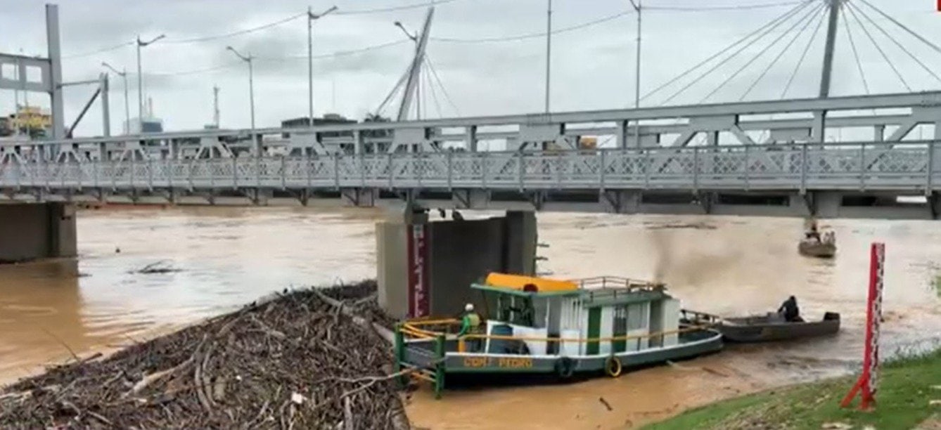 Nesta sexta-feira (16), o nível do rio Juruá, em Cruzeiro do Sul, está em 12,43 metros, se aproximando da cota de transbordamento, que é de